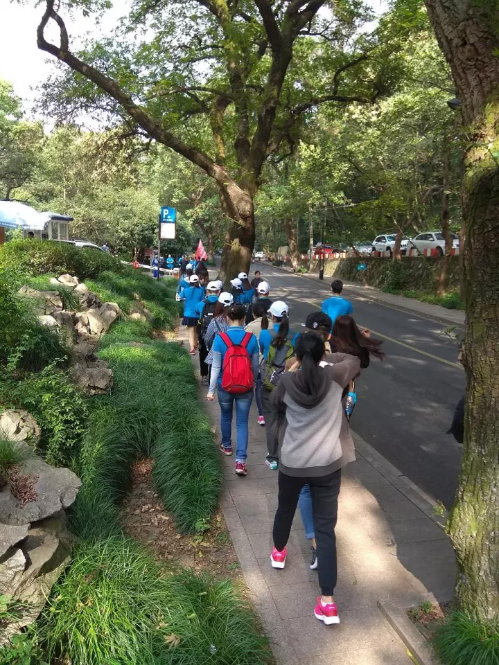 仁本大家庭的伙伴們素質和時間觀念就是強,沒有人遲到,保證我們9:30準時登山。每個人都穿上了公司的統一服裝,點名完畢并分工好,誰帶頭,誰居中防護,誰押尾等工作安排后,我們就出發了。 還沒開始上山的時候,大家步伐還是比較輕快的