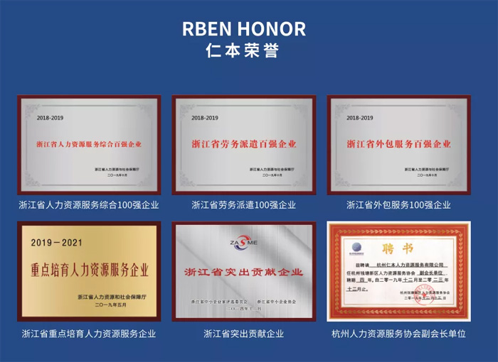 員工事務工作全覆蓋,讓管理輕松有效 仁本勞務外包/派遣服務,全面介入企業派遣員工從入職到離職的全部過程,承接企業相關外包業務。 服務涵蓋人員招聘、面試體檢、勞動合同簽訂、社保個稅繳納、工資發放、勞資糾紛處理等一系列人事相關工作。 仁本現已為超過一千家優質企業量身定制外包/派遣服務方案,提供專業全面的服務,涉及電子、機械、化工、食品、金融等多行業,穩定派遣員工超8萬人。 專業高效服務閉環,讓客戶更加省心 杭州仁本人力資源服務公司創辦于2005年11月,國內首批人力資源服務公司;浙江省政府重點支持人力資源服務企業,浙江省人力資源服務綜合100強企業,浙江省突出貢獻企業,中國勞務派遣誠信單位。深耕人力資源服務行業16年,仁本摸索出一套完整的行之有效的服務服務流程和標準。 招聘丨線上招聘團隊結合仁本獨創“仁才庫”,匯聚超30萬技能人才,解決企業招聘難題。 人事管理丨專業客服團隊,一對一全程對接客戶單位派遣業務,合同簽訂,入職離職管理,個稅社保申報,工資核算發放一站式服務。 財務法務丨仁本有一整套的專業財務/法務團隊,為客戶提供提供強有力的財務/法務支持,政策解讀專業及時,風險意識強,快速高效的為客戶單位降低用工風險,減少勞動糾紛。