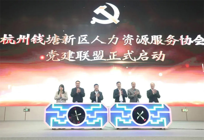 本次活動由新區(qū)黨群工作部(組織部)指導、社會發(fā)展局主辦,杭州錢塘新區(qū)黨工委委員、黨群工作部(組織部)部長陳金泉,社會發(fā)展局局長韓建明出席并為人力資源服務協會黨建聯盟揭牌。 黨建聯盟的成立,標志著新區(qū)構建政治理論聯學、優(yōu)勢資源聯享、實踐活動聯辦、黨員隊伍聯建、信息知識聯通、紅色品牌聯創(chuàng)的黨建新格局,推動人力資源服務行業(yè)高質量發(fā)展的紅色引擎。