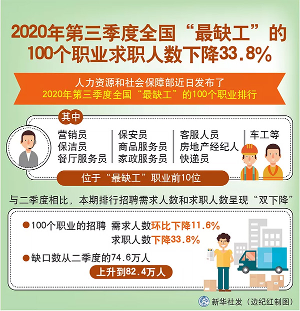 最近一段時間,隨著國內疫情的緩解,消費和生產的快速回暖,各行各業的用工需求持續上升,缺口開始變大,甚至是往年春節前才會出現的季節性“用工荒”,今年也大幅提前。 近日,人力資源和社會保障部近日發布了2020年第三季度全國“最缺工”的100個職業排行。