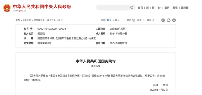 重磅消息來啦!國務(wù)院決定對《全國年節(jié)及紀(jì)念日放假辦法》作出修改,2025年起,法定節(jié)假日增加2天!