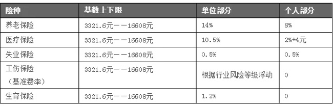 01、社保繳費基數上下限基本確定 此前,國務院決定調低社保繳費基數標準,即各地由過去依據城鎮非私營單位在崗職工平均工資,改為以本省城鎮非私營單位和私營單位加權計算的全口徑就業人員平均工資,核定繳費基數上下限,使繳費基數降低。 仁本小編了解到,浙江省在崗職工平均工資統計口徑,其實已按以上標準執行。因此,杭州社?;鶖瞪舷孪薜暮硕趶筋A計不會改變。 杭州社保基數上下限的確定規則為:參保職工社會保險繳費基數下限為上年度全省職工月平均工資的60%,上限為上年度全省職工月平均工資的300%。因此,我們推測今年7月左右公布的杭州社保繳費基數上下限為3321.6元——16608元。而接下來杭州的企業社?;鶖当壤赡軐{整為: