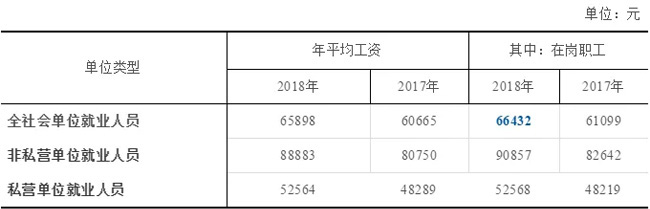 浙江省統計局公布了《2018年浙江省全社會單位就業人員年平均工資統計公報》,其中包括非私營單位就業人員年平均工資和私營單位就業人員年平均工資。